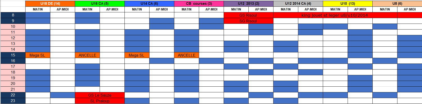 Le calendrier "tross" vous sera communiqué dès que possible !