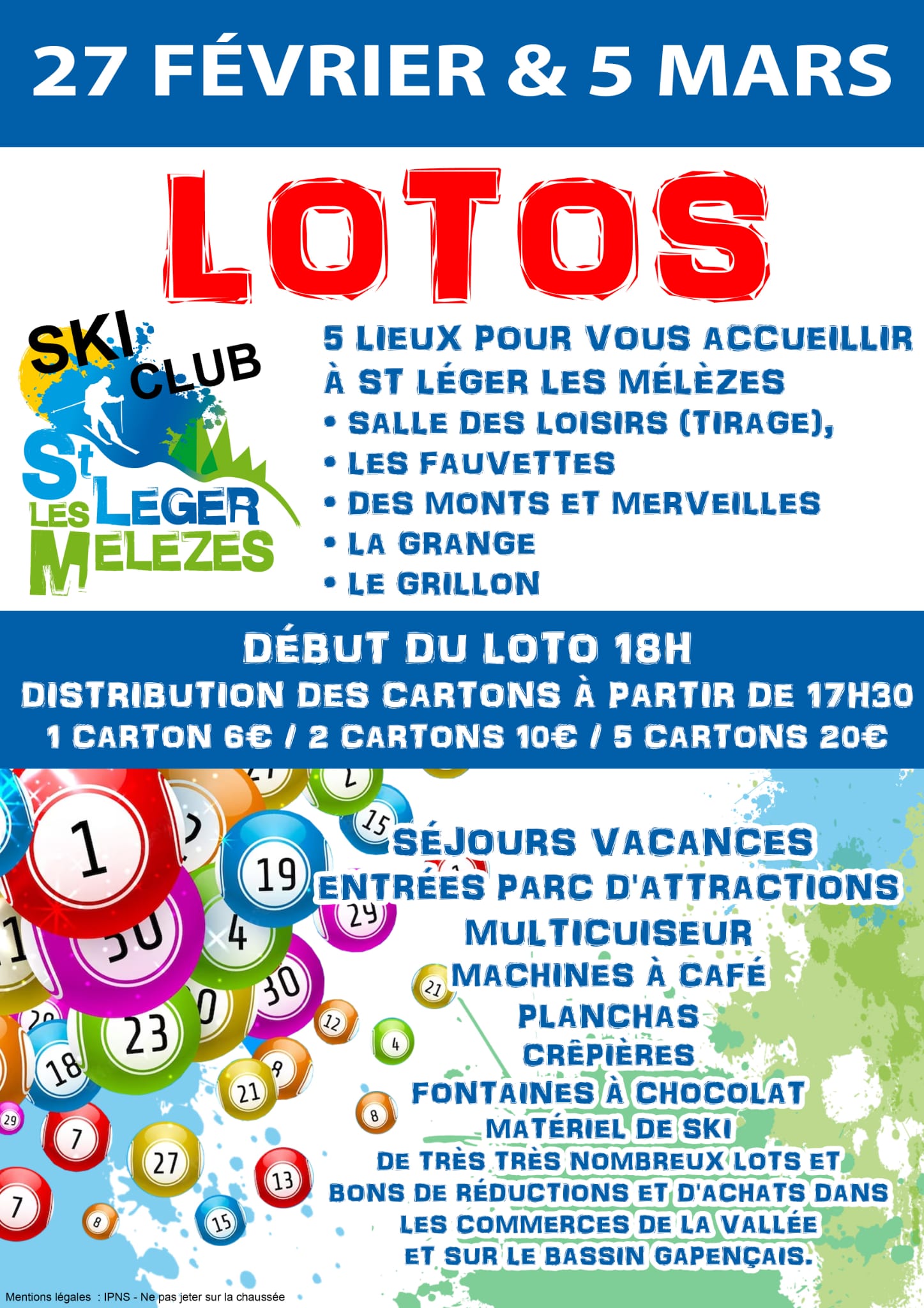 Encore MERCI pour tous les lots récoltés, mais nous vous sollicitons à nouveau pour assurer le bon déroulement des deux LOTOS qui auront lieu mardi 27/02 et mardi 05/03.